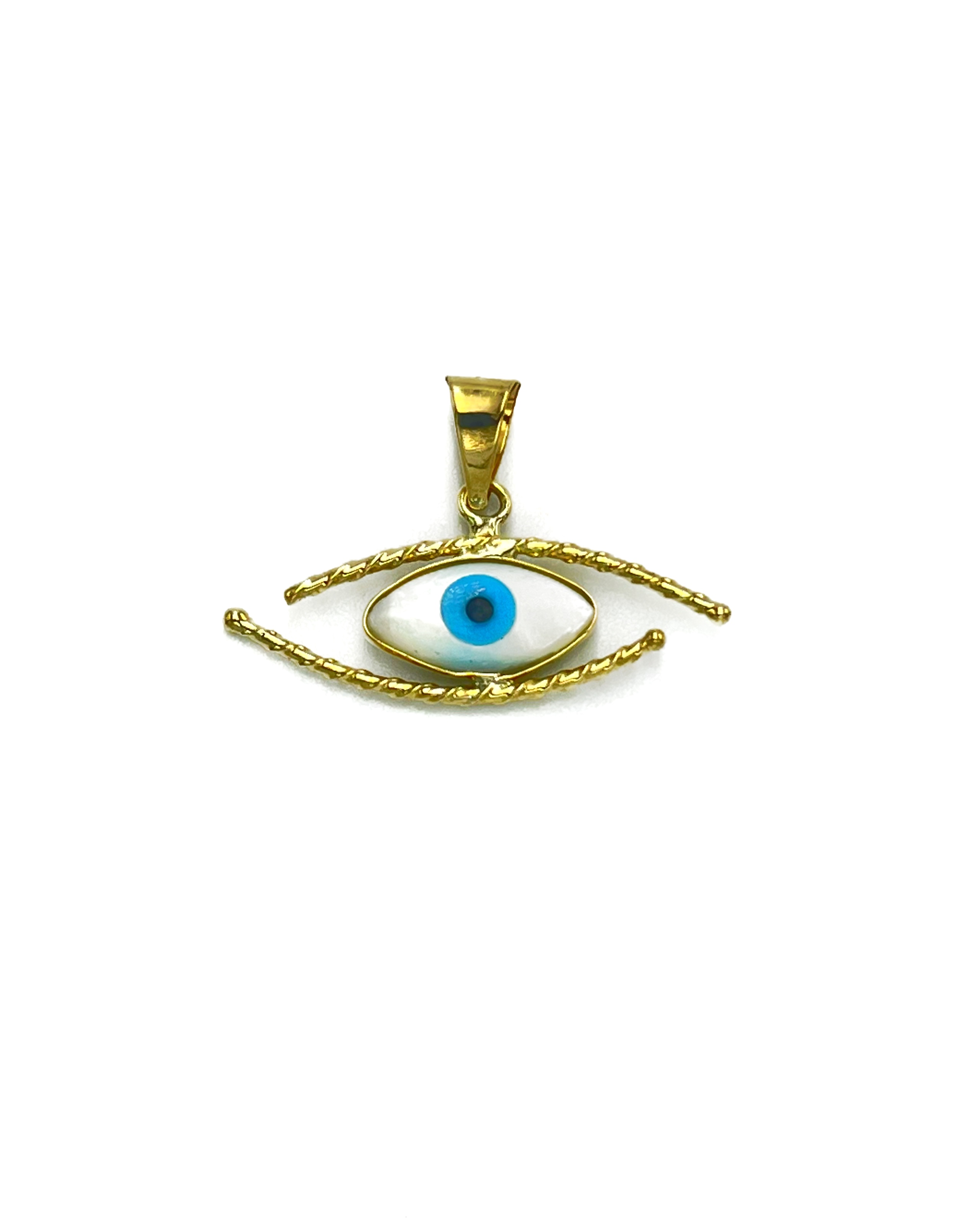 Ματάκι χειροποίητο, με σύρμα σε σχέδιο ματιού καιπετρα φιλντισι και κατασκευάζεται σε Κίτρινο και Λευκό χρυσό και Κ9, Κ14, Κ18