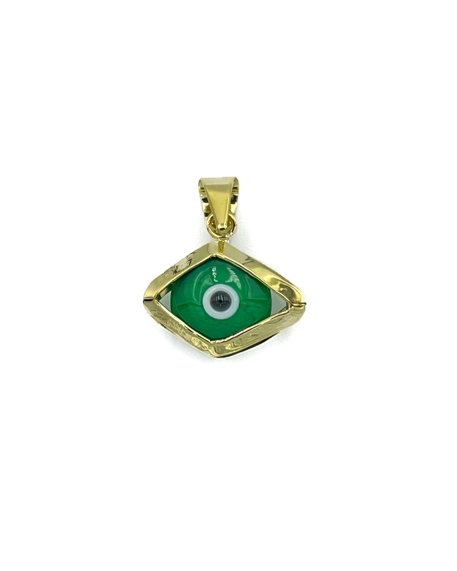 Ματάκι χειροποίητο, διπλής όψεως σχέδιο ματιού,εξωτερική διάμετρος 15x11mm, χρώμα πέτρας πρασινο, κατασκευάζεται σε Κίτρινο ή Λευκό χρυσό και Κ9, Κ14, Κ18