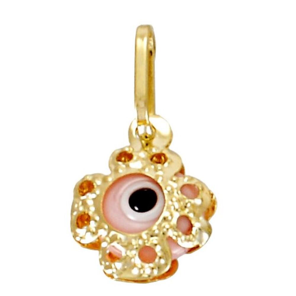 Καλαθάκι διπλής όψεως με μάτι από γυαλί, χρώμα πέτρας ροζ, κατασκευάζεται σε Κίτρινο και Λευκό χρυσό και Κ9, Κ14, Κ18