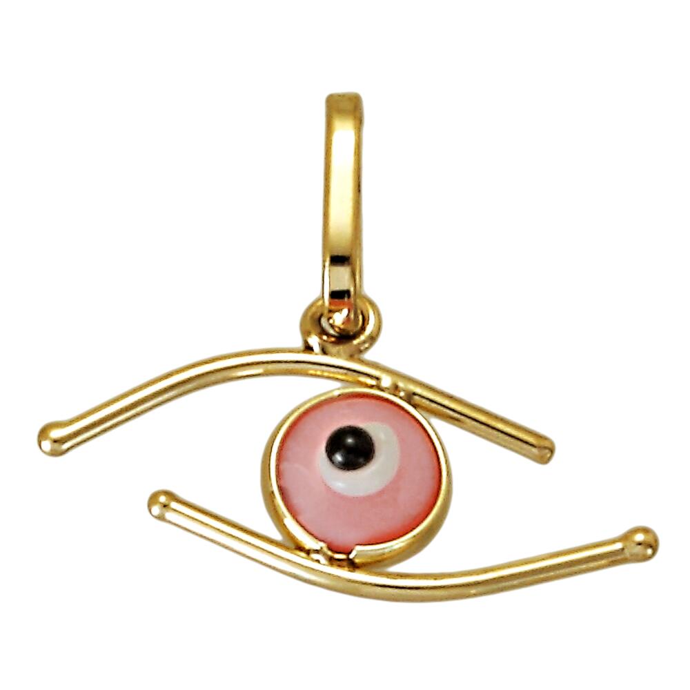 Ματάκι Χειροποίητο με σύρμα σε σχέδιο ματιού,,εξωτερική διάμετρος 16x8mm, χρώμα πέτρας ροζ, κατασκευάζεται σε Κίτρινο και Λευκό χρυσό Κ9, Κ14, Κ18
