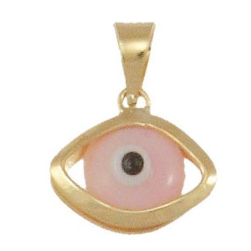 Ματάκι στριφτό χειροποίητο, διπλής όψεως, σε σχέδιο ματιού,εξωτερική ματιού 15x11mm, χρώμα πέτρας ροζ, κατασκευάζεται σε Κίτρινο ή Λευκό χρυσό και Κ9, Κ14, Κ18