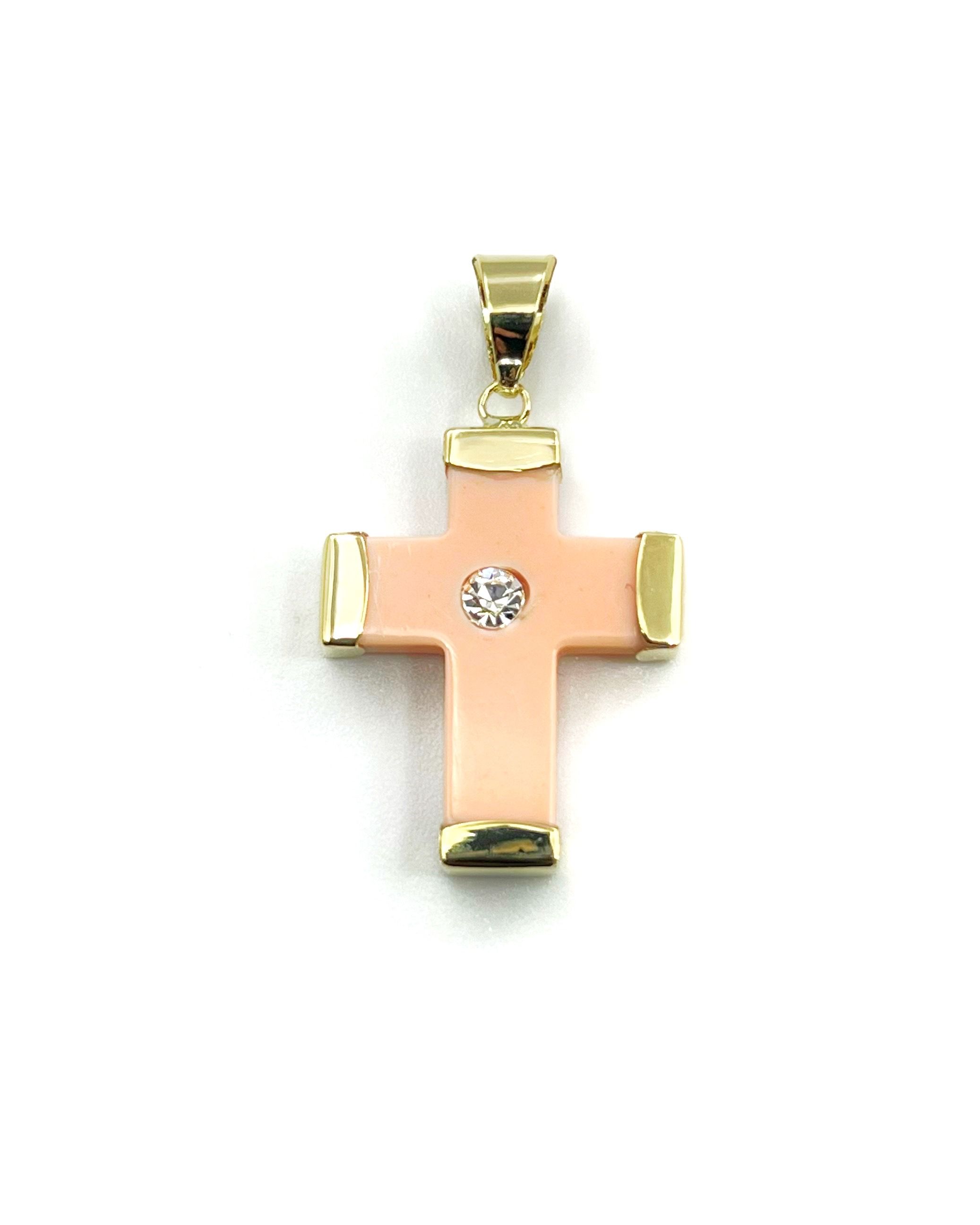 Σταύρος συνθετική πέτρα χρώμα ροζ με καπάκια