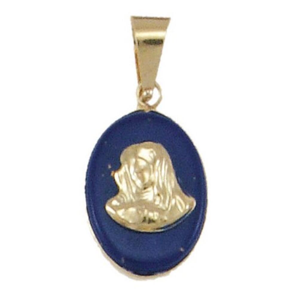 Μοτίφ, κέντρο Παναγία,με συνθετική πέτρα σχέδιο οβάλ(χρώμα λάπις),εξωτερική διάμετρος 11x14mm, κατασκευάζεται σε Κίτρινο χρυσό και Κ9, Κ14, Κ18