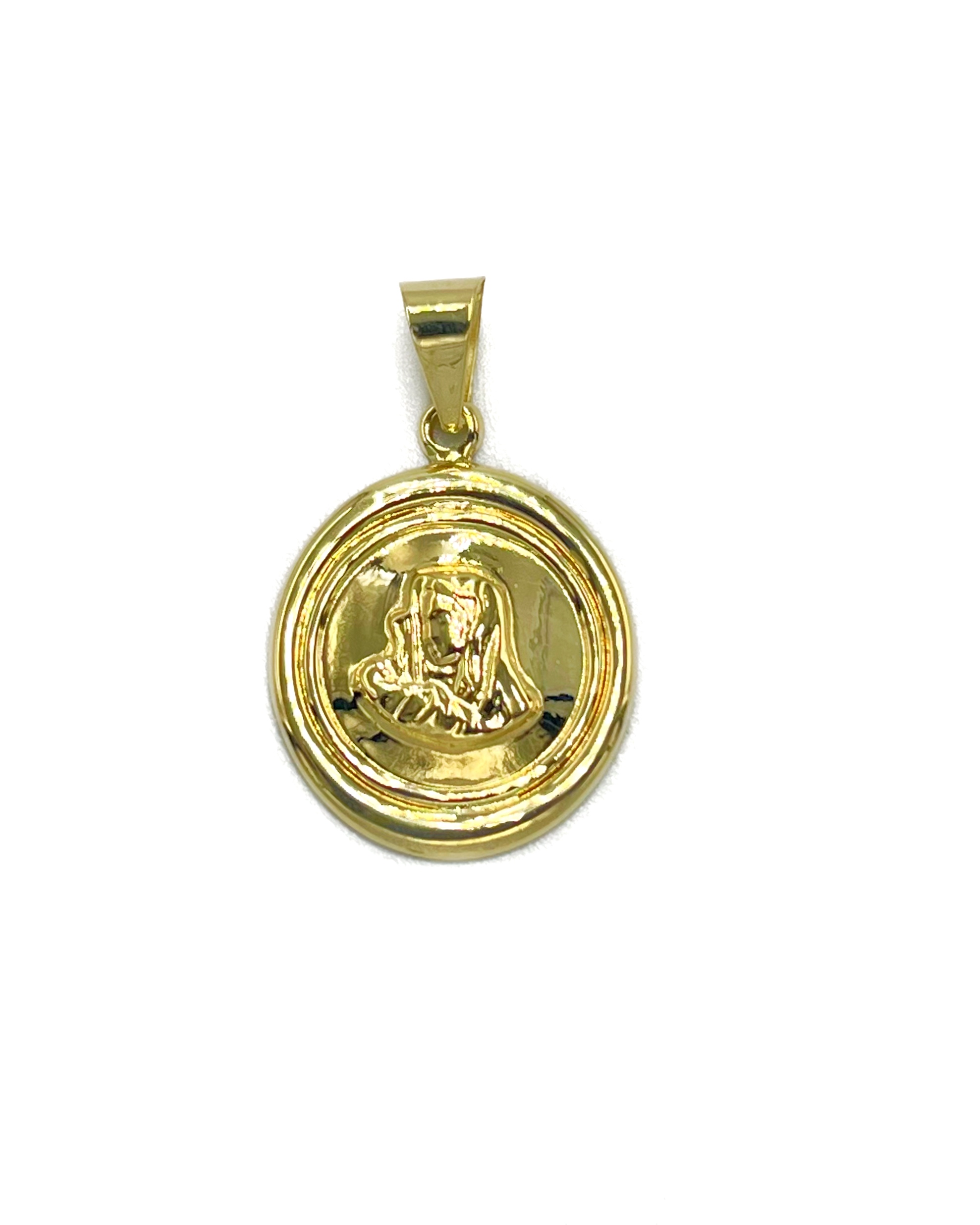 Μενταγιόν Παναγία,βάρος περίπου 1,00γρ κατασκευάζεται σε Κίτρινο και Λευκό/δίχρωμο χρυσό και Κ9, Κ14, Κ18
