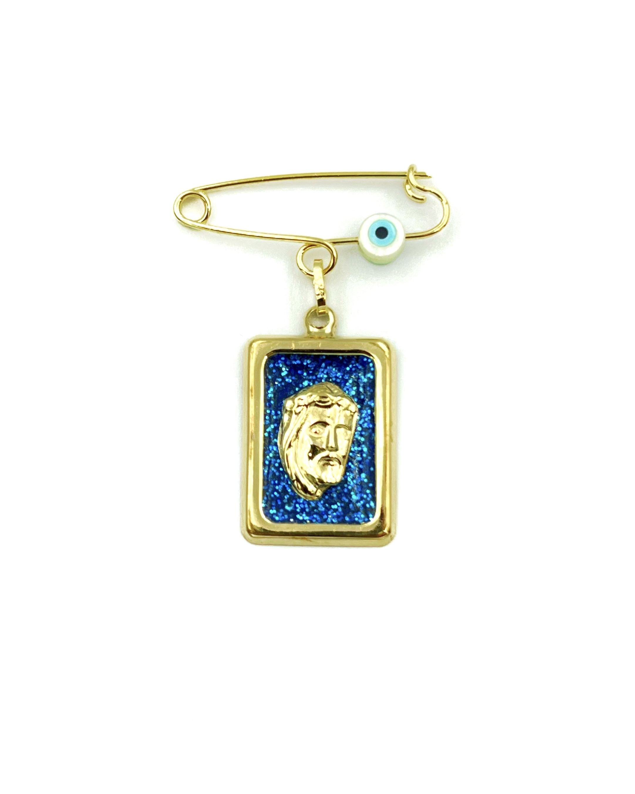 Φυλακτό Χριστός (με ΓΚΛΙΝΤΕΡ) με σύρματινη παραμάνα και ματάκι (χρώμα τυρκουάζ)