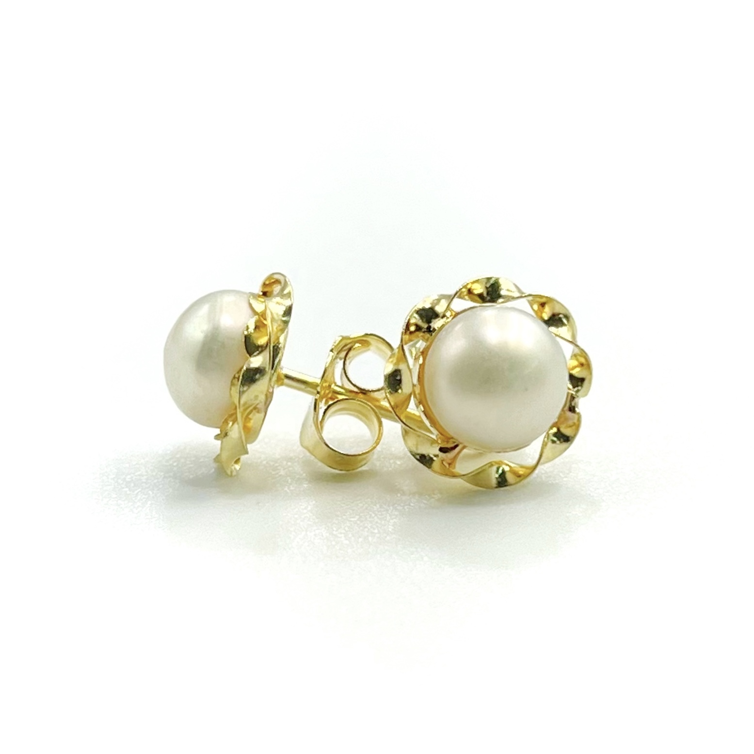 Σκουλαρίκι σχέδιο στριφτό σύρμα, με μαργαριτάρι διαμέτρου 6mm, κατασκευάζεται σε Κίτρινο και λευκό χρυσό και Κ9, Κ14, Κ18