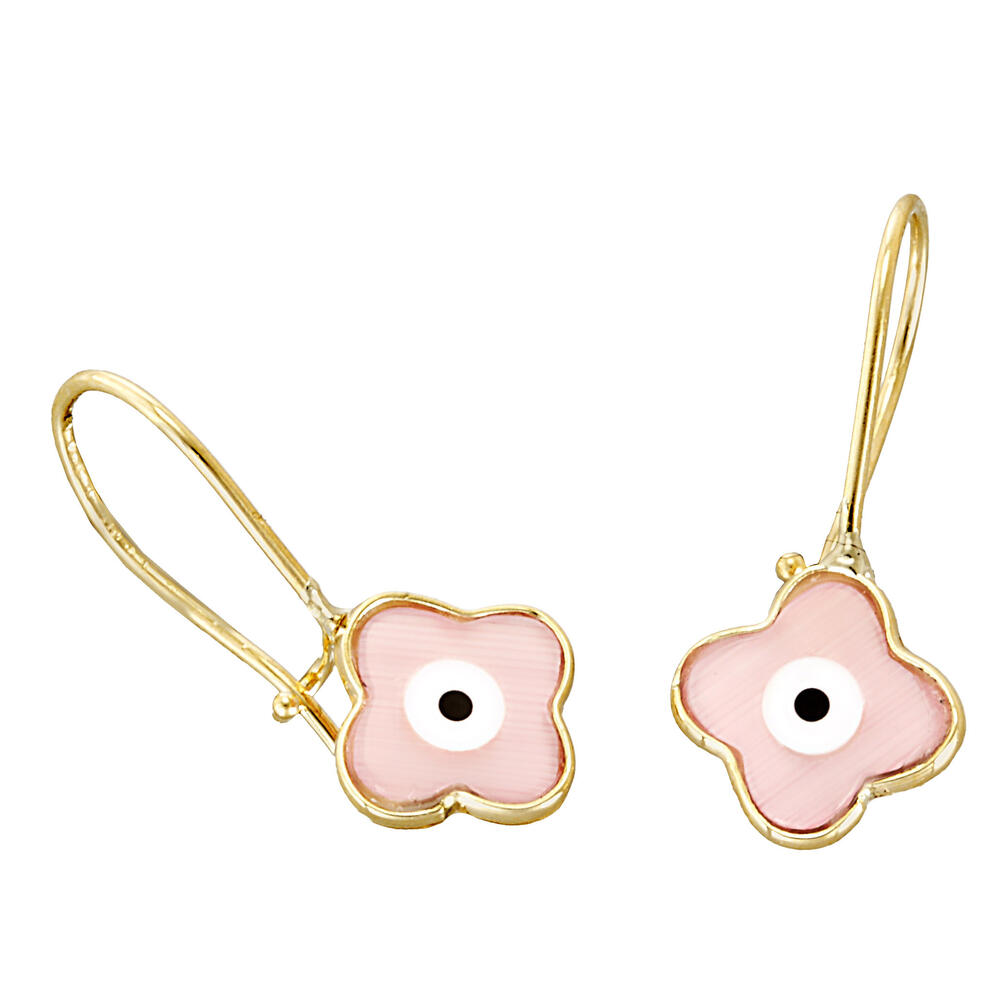 Σκουλαρίκια Ματάκια σχέδιο πέτρας Σταυρός (χρώμα ροζ )