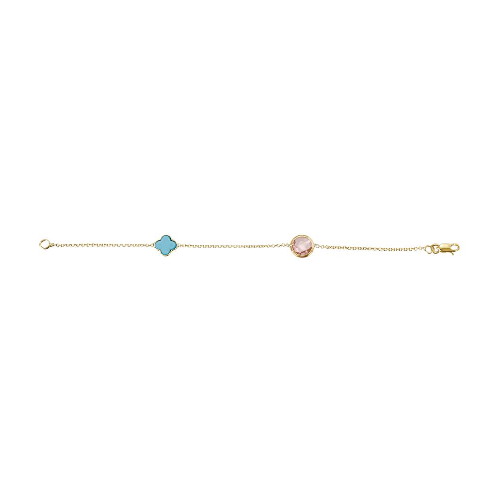 Βραχιόλι με καδένα,με μια πέτρα σχέδιο σταυρός (χρώμα τυρκουάζ) και μια πέτρα (χρώμα ροζ) στρογγυλή ταγε, μήκους 16 εκ.,κατασκευάζεται σε Κίτρινο χρυσό και Κ9, Κ14, Κ18